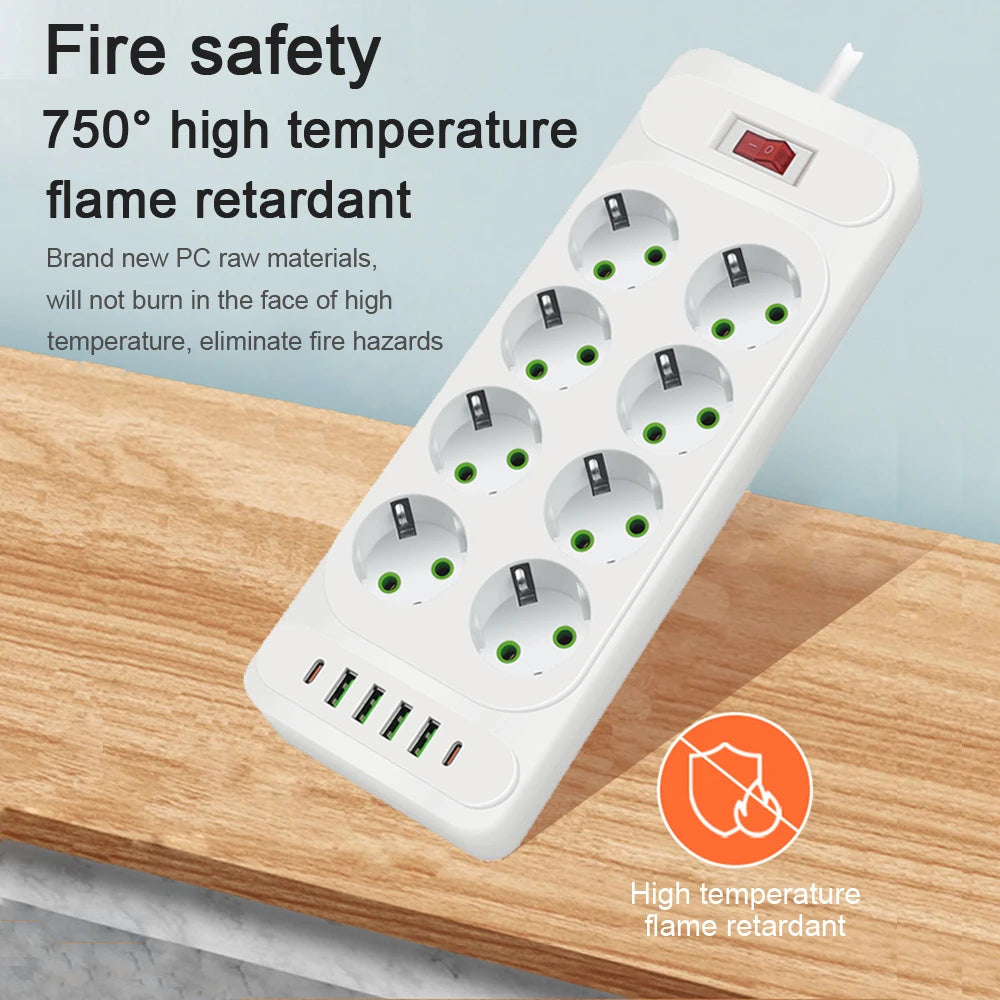 EU Plug Power Strip with 6 Outlets & 5 USB Ports