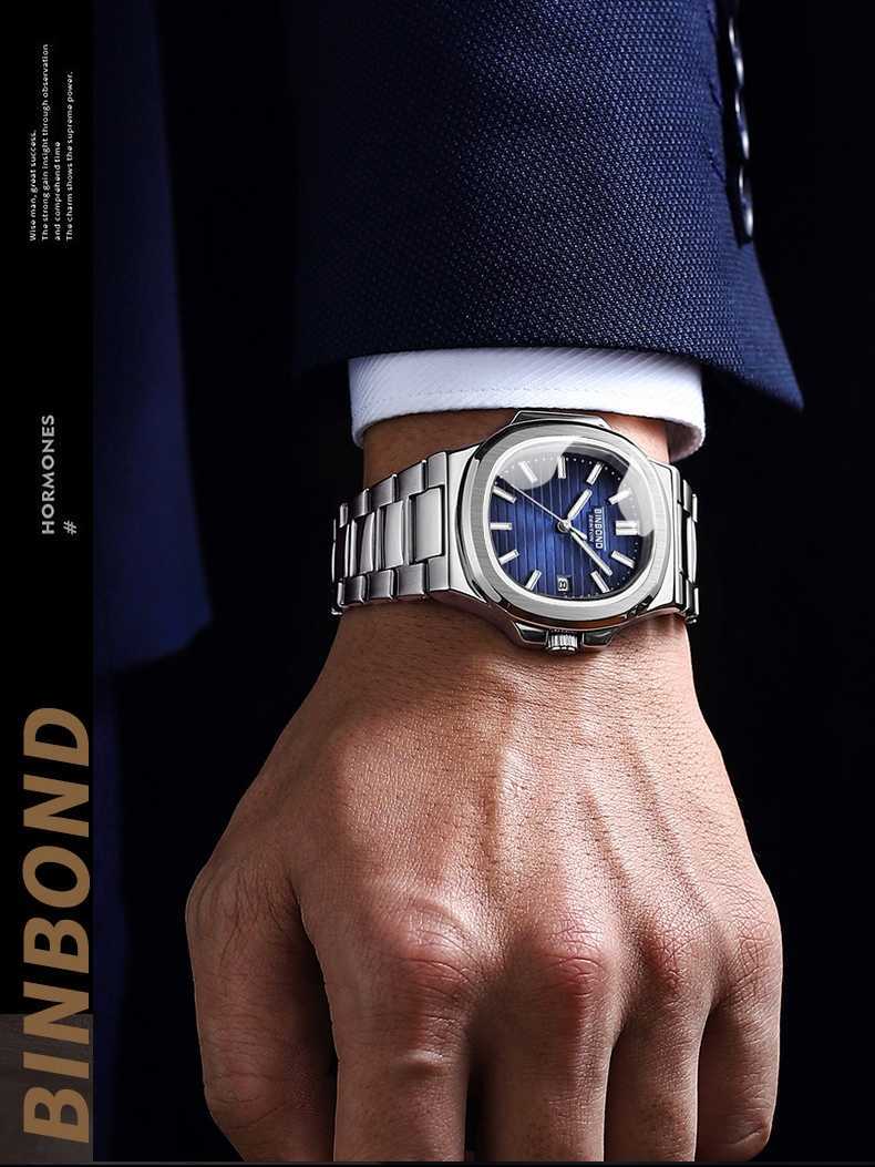 Vattentät fyrkantig klocka för män, affärsmode